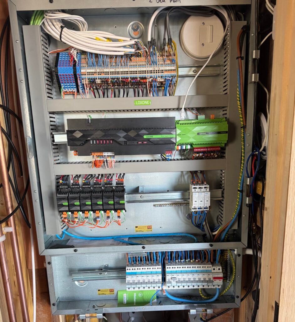 Future-proof: The cabinet was designed with spare DIN-rail space and extra network cabling, allowing for easy expansion – whether it’s adding more Loxone modules, lighting circuits, or new sensors as future needs arise.